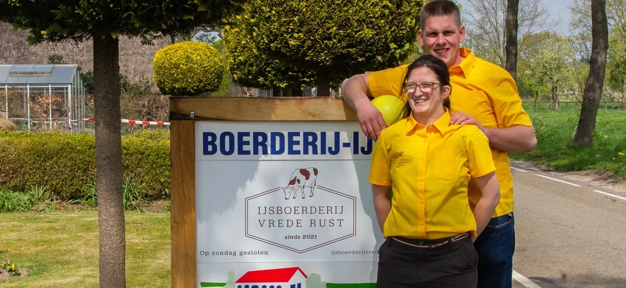 'Ons boerderij ijs is vol van smaak. Dit komt door gebruik van onze eigen volle melk, rechtstreeks van onze eigen koeien. Ook de room die in ons ijs zit, produceren we zelf en daarnaast gebruiken we pure, natuurlijke basisgrondstoffen'.