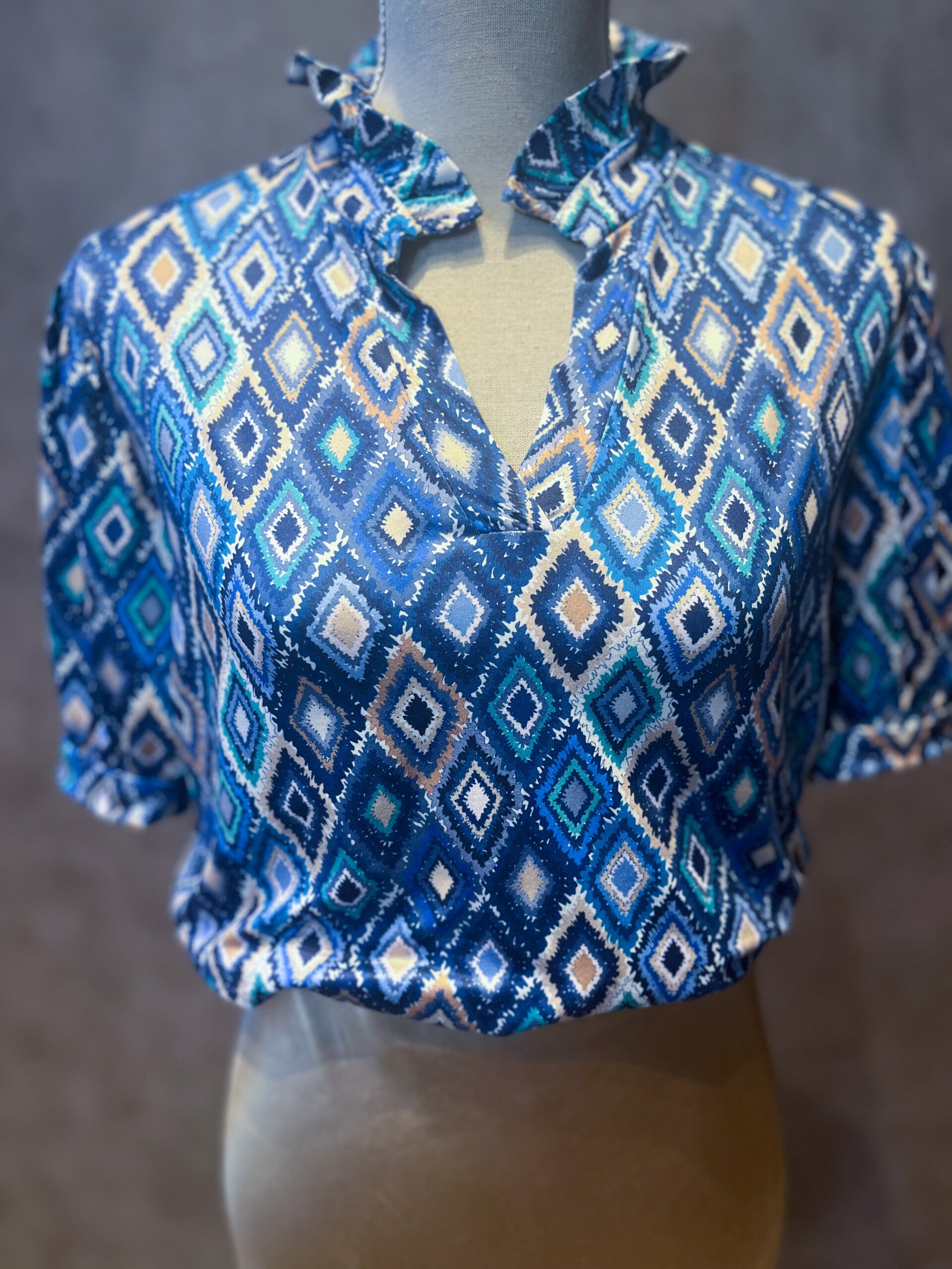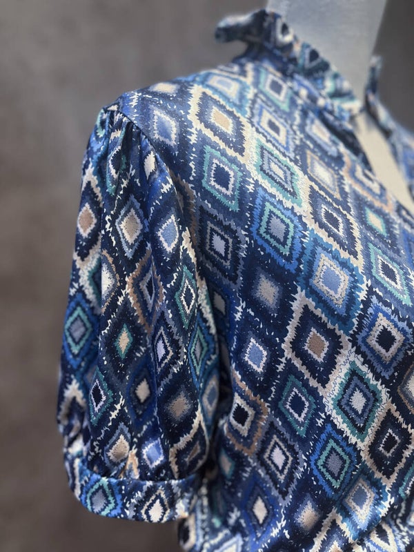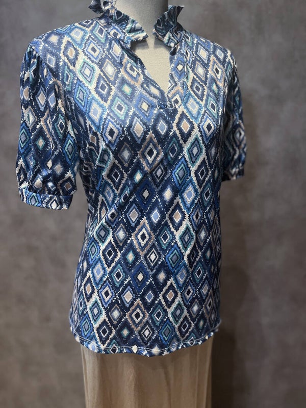 Leuk shirt korte mouw , met een mooie print.De stof voelt heerlijk zacht aan.Materiaal:60% Polyamide30% Viscose10% Elastane