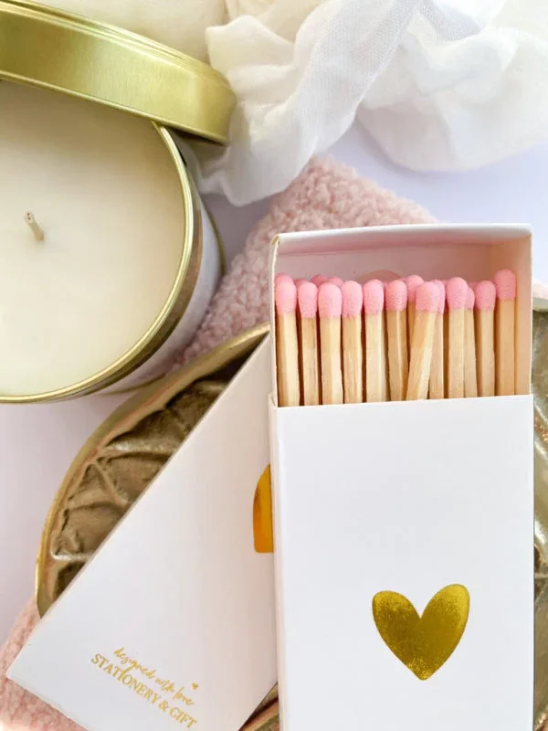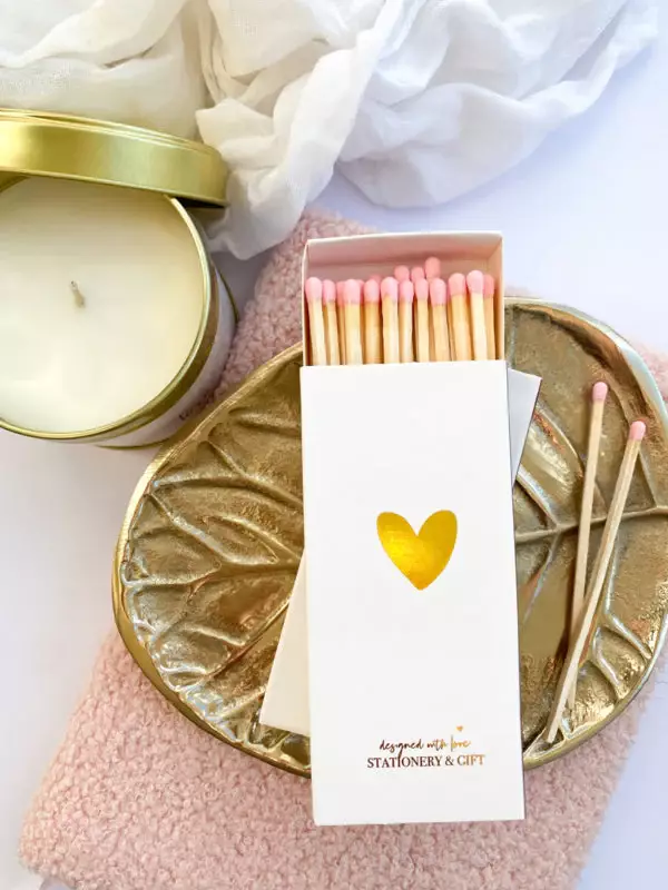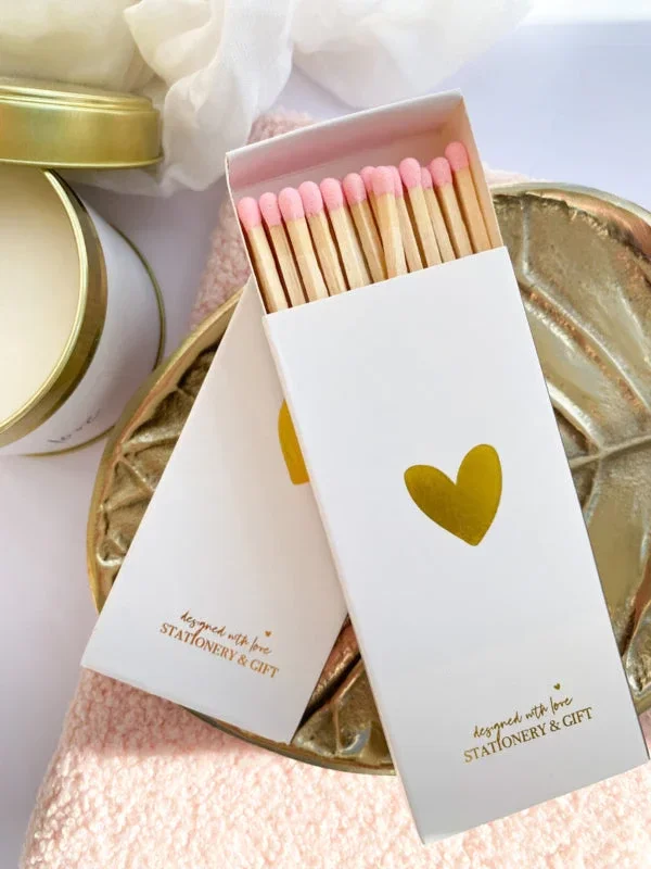 Lucifers | Stationery & Gift Lucifers | Gouden hartje | Roze lucifers | 10 cm lang | 40 lucifers