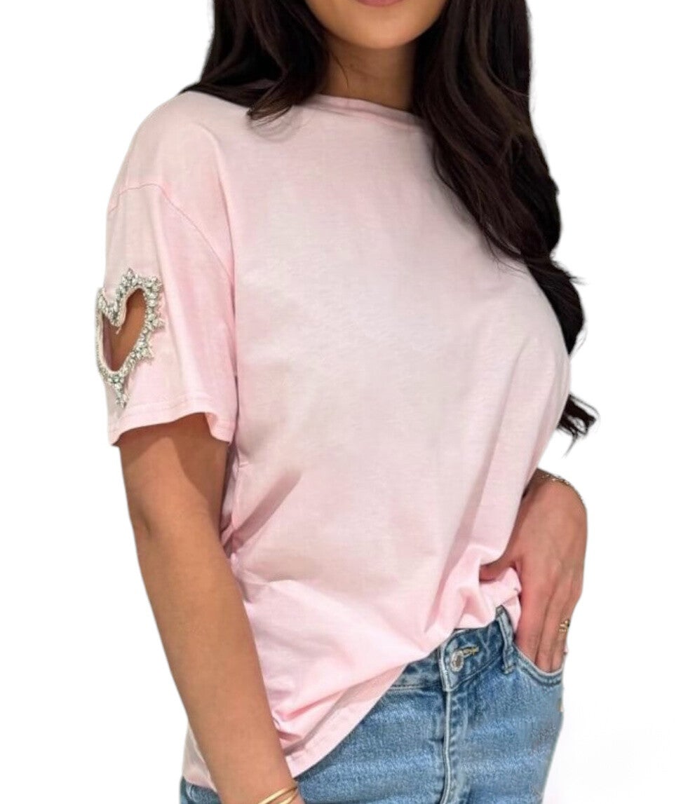 Super mooi t-shirt met een mooi open hart op beide armstukken. 100% Katoen.