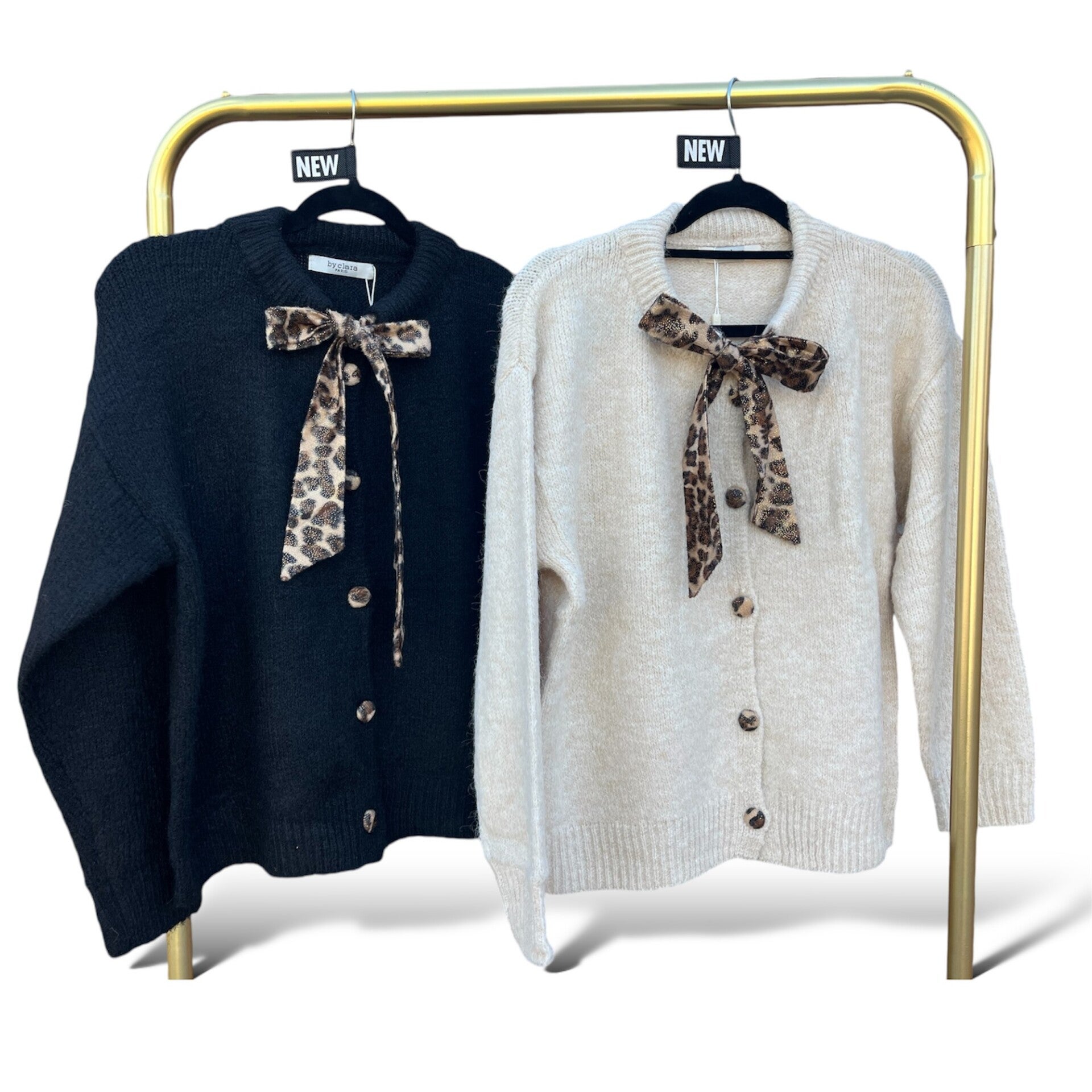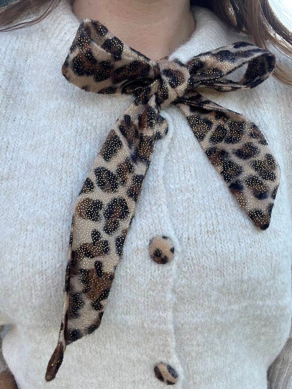 Heerlijke zachte truien met een leuke detail panterprint strik en knoopjes.