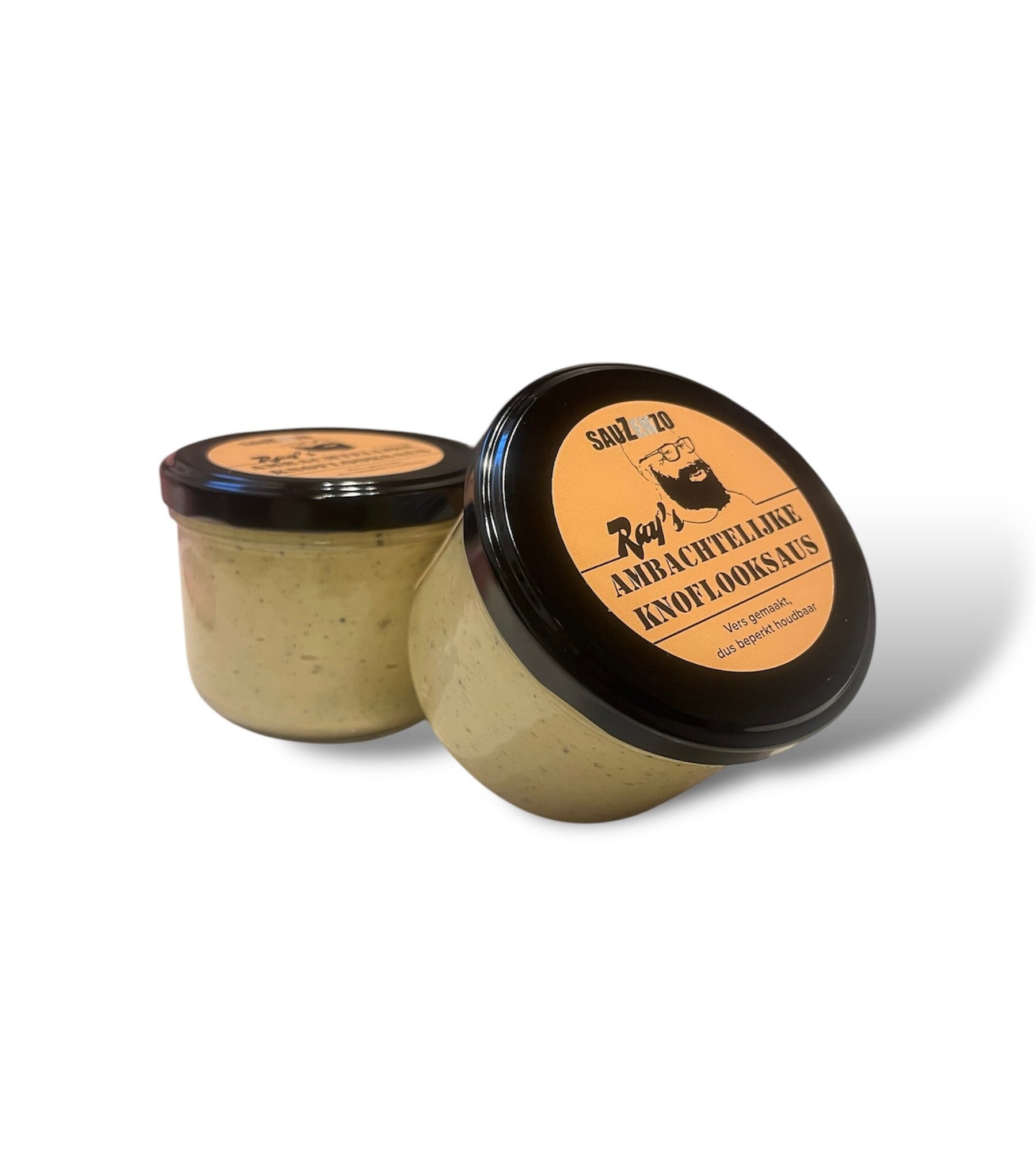 Ray’s ambachtelijke vers gemaakte knoflooksaus, bereid met verse knoflook en kruiden.