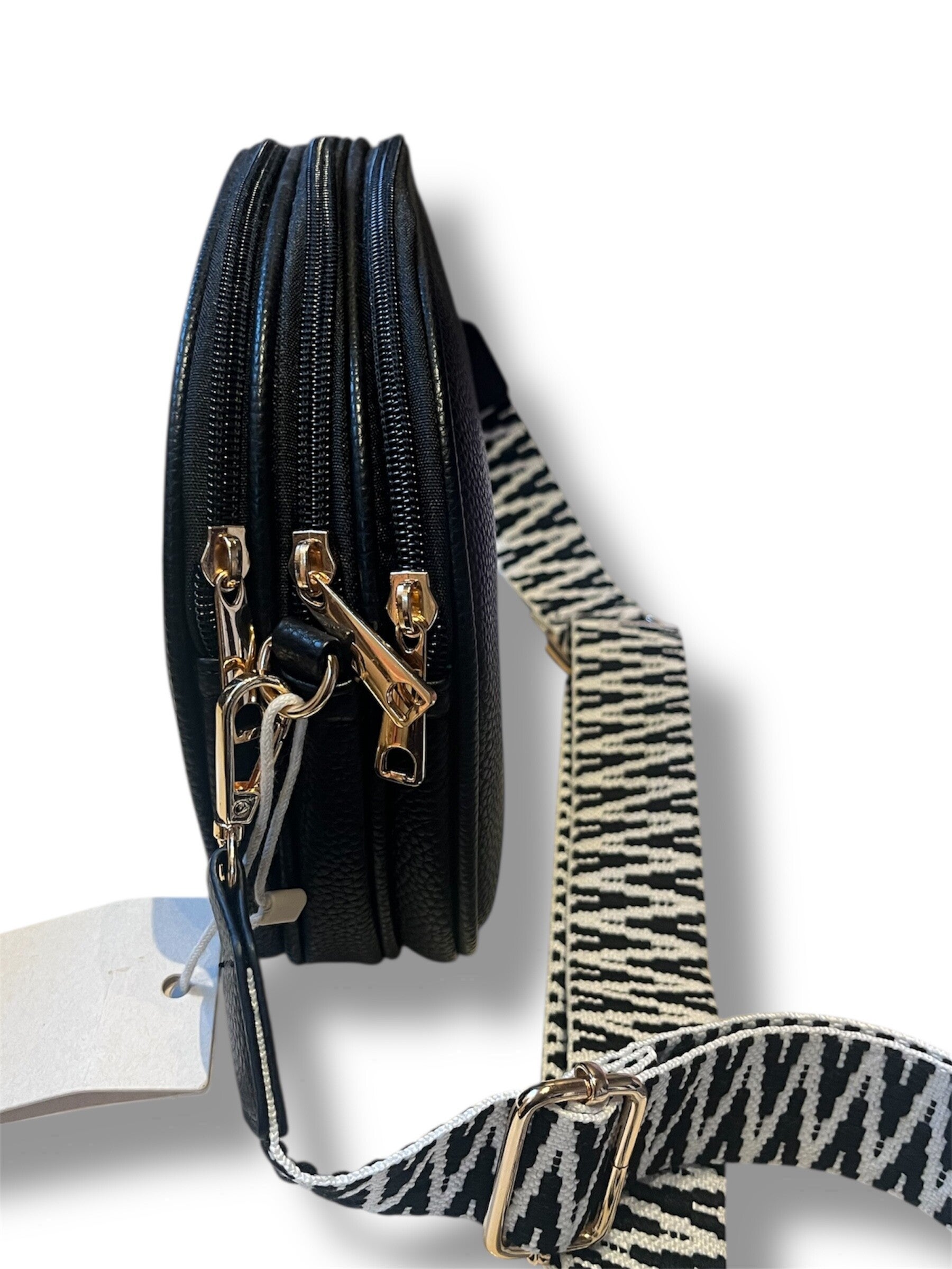Leuke crossbody tas met drie ritsen.Aan één kant een ritssluiting/zijvak.